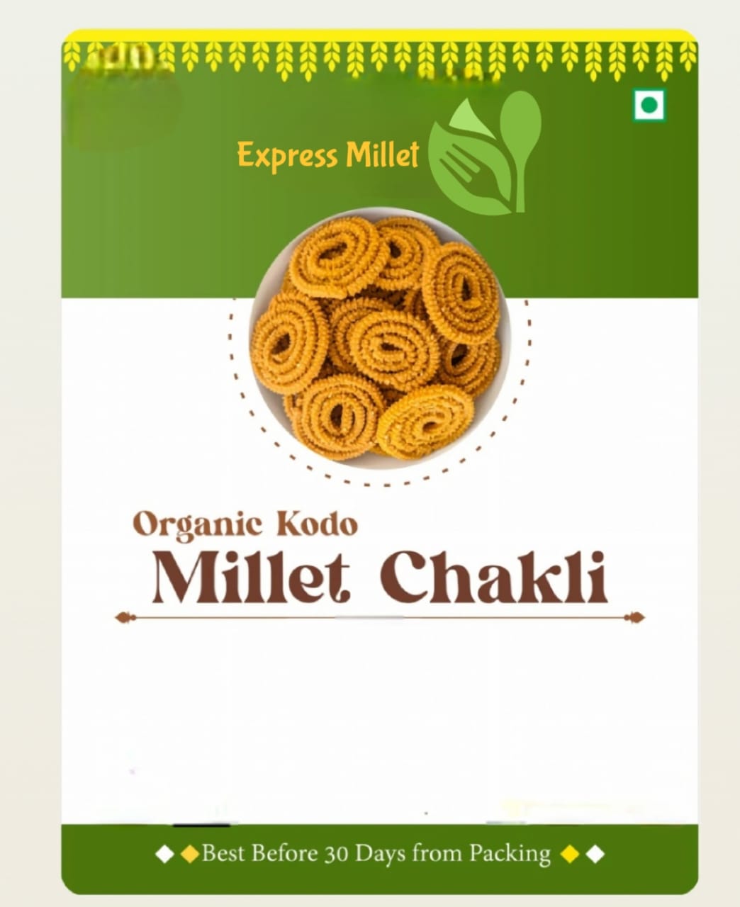 A Pack of organic kodo millet chakli in ready to eat condition is prepared in Bull driven Groundnut oil and all organic ingredients. A Best Travel friendly millet food. Image shown in product packing are for representation only. Our Millet Chakli will not be always in this shape, There will be small yummy and tasty pieces of millet chakli Organic Kodo millet is rich in protein and fiber. offering up to 8.5 grams of fiber per 100 grams of grain. This makes it a great source of plant-based protein for vegetarians and vegans. Additionally, organic kodo millet chakli is rich in dietary fiber, which is essential for healthy digestion and can promote a feeling of fullness. When it comes to buying organic kodo millet, you can find it in various forms such as whole grain, rolled or crushed, or even as a organic kodo flour. The whole grain version or Unpolished kodo millet is the most nutrient-dense version of the grain and is best for adding to dishes like rice baths, Idli, dosa, and sweets.